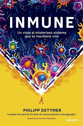 En Inmune, Dettmer continúa y amplía la labor de divulgación que realiza en su famosísimo canal de YouTube «En pocas palabras», uno de los canales más vistos del mundo. Lleno de atractivos gráficos e ilustraciones, este libro riguroso pero accesible para todos los públicos nos invita a un viaje para conocer con detalle cómo funciona y cómo nos protege nuestro sistema inmunitario.