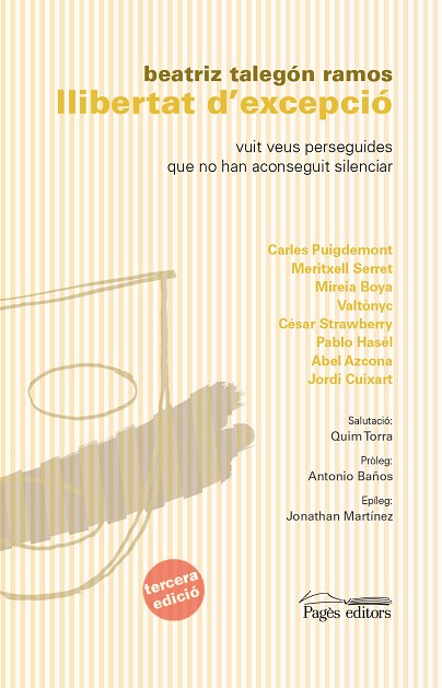 La llibertat d’expressió és un dels drets bàsics perquè una democràcia es pugui considerar com a tal. La llibertat de pensament, l’accés a la informació contrastada i veraç, representen garanties sense les quals una societat no es pot considerar lliure. Mitjançant l’entrevista, a Llibertat d’excepció es fa un recorregut per diferents àmbits des dels punts de vista d’actors socials de gran rellevància actual. Hi han col·laborat, a més, escriptors i intel·lectuals que donen la seva visió sobre la importància del fet de trobar-nos en moments de repressió. Un llibre elaborat per poder-lo llegir de diferents maneres: les preguntes semblants als entrevistats permeten fer un recorregut saltant d’una entrevista a l’altra per contrastar les diverses opinions sobre una mateixa qüestió. Serveix així per comprendre també els diferents punts de vista sobre aquest assumpte tan important. Avui dia, aquest llibre representa, sense cap dubte, una excepció de llibertat. Passeu i llegiu.
